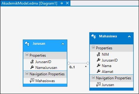 Bagi yang pernah menggunakan Entity Framework sebagai data access dan mempublish datanya dengan Web API maka mungkin akan bertemu masalah ini. Masalah ini biasanya terjadi ketika ada relasi antar model seperti pada gambar berikut ini :