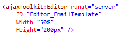 <add tagPrefix=”ajaxToolkit” assembly=”AjaxControlToolkit” namespace=”AjaxControlToolkit.HTMLEditor” />