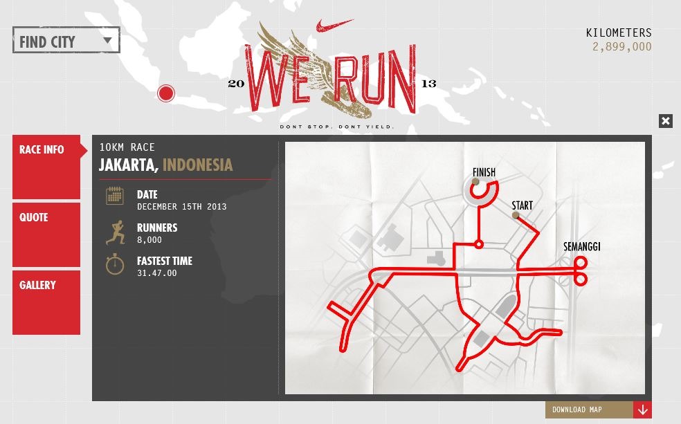 Ini dia rute lari yang akan dilewati oleh 8.000 pelari, seperti orang sedang sedang membajak sawah katanya, dan memang mirip seperti orang sedang berlari sambil membawa bajak ![]()