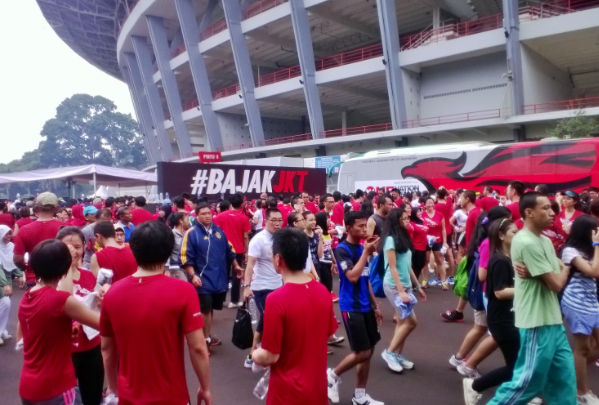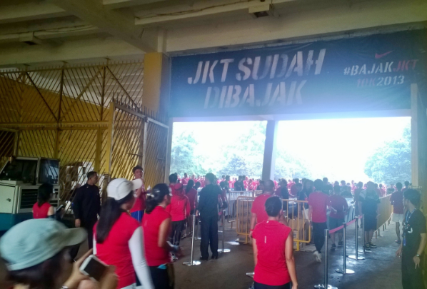 Selajutnya sambil keluar stadion mulai antri untuk membajak kaos finisher. Lumayan race kali ini dengan bermodal 200rb dapat 2 kaos nike dri-fit yang biasanya di toko seharga di atas 200rb #irit.