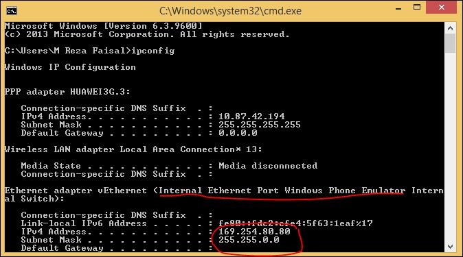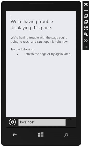 Hasilnya … Ternyata tidak terjadi pada emulator Windows Phone. Hal ini disebabkan emulator adalah “komputer” yang berbeda dengan PC. Selain itu alamat http://localhost adalah cara yang digunakan untuk mengakses “diri sendiri”, artinya ketika menuliskan alamat tersebut pada emulator maka artinya akan mengakses web server pada emulator tersebut, sedangkan yang kita inginkan adalah mengakses web server pada PC.