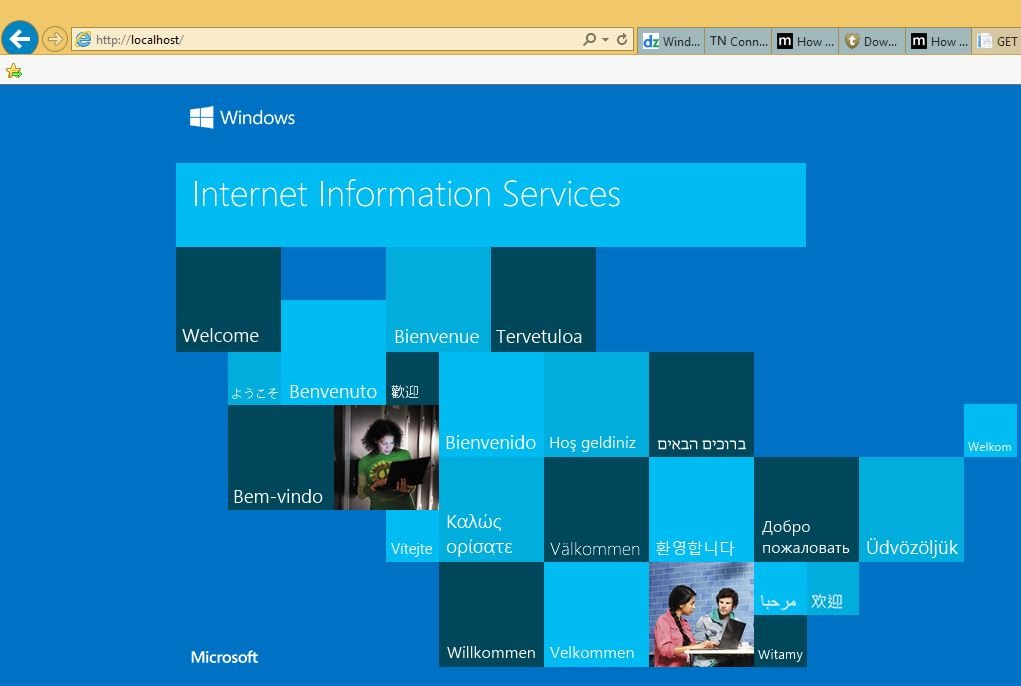 Baiklah, kalau begitu langsung saja untuk mencobanya. Pertama adalah mencoba untuk mengakses IIS (tanpa Express), kalau via web browser di PC maka biasanya kita akses web server tersebut dengan menuliskan http://localhost pada address bar dan akan dilihat seperti tampilan berikut :