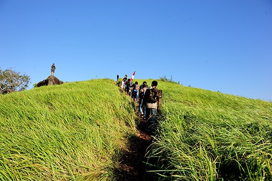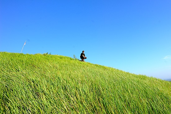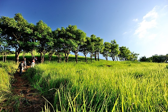Ternyata di puncaknya pun memberikan keindahan tersendiri, yaitu hamparan rerumputan hijau seperti ini.