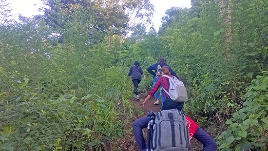 Dan akhirnya mulailah perjalanan yang penuh keringat, nafas yang ngos-ngosan, dan paha yang mulai disuruh bekerja keras untuk mengangkat badan. Jadi untuk kenyaman selama perjalanan, dianjurkan untuk memakai sepatu atau sandal gunung bukan sandal gaul apalagi highheel #eh.
