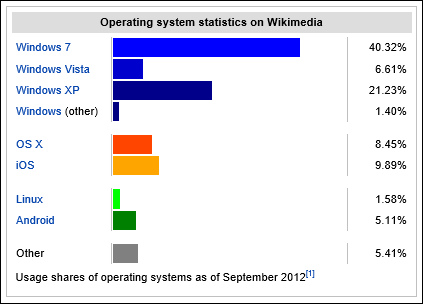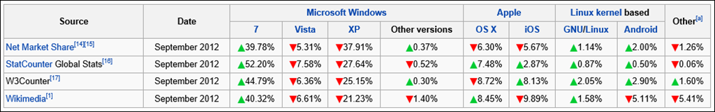 Menurut http://en.wikipedia.org/wiki/Usage_share_of_operating_systems, terhitung September 2012 maka berikut adalah perolehan data pengguna sistem operasi saat ini.